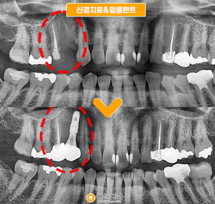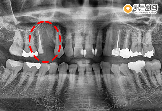 옆의 치아는 신경치료까지 완료한 파노라마 사진입니다.