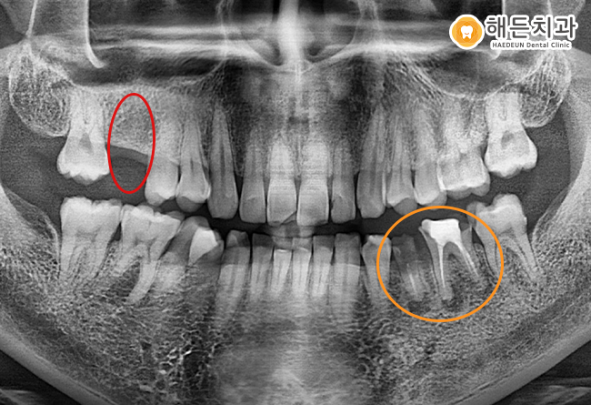 그리고 빨간색 동그라미의 오른쪽 위 큰어금니가