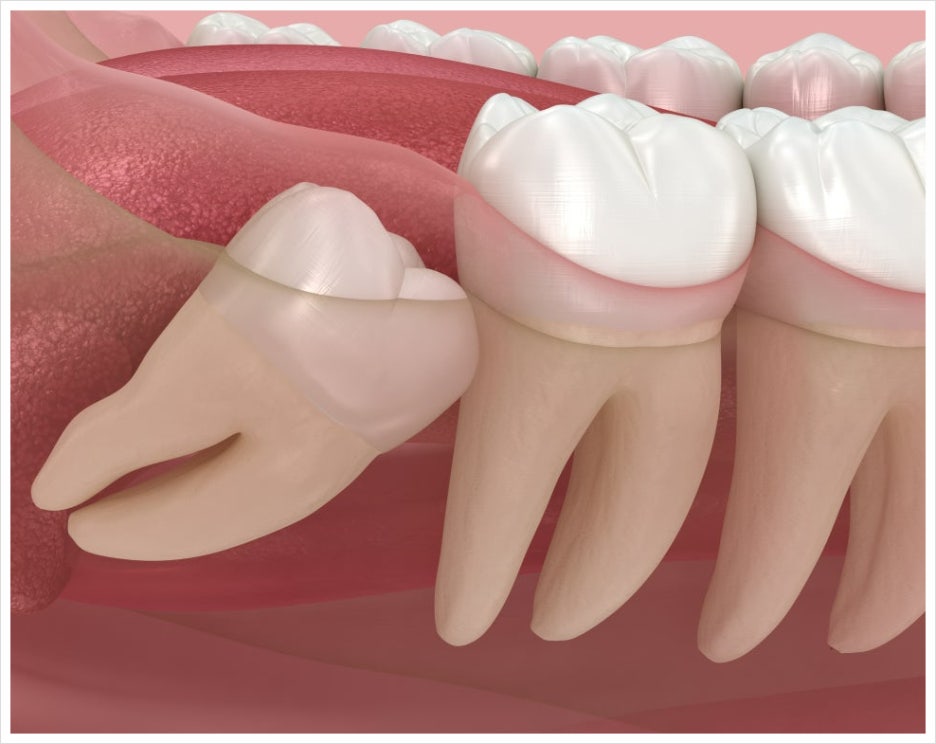 공간 부족으로 인해 완전히 잇몸을 뚫고 나오지 못하거나 기울어지는 경우도 있고, 잇몸 속에 파묻혀 있는 등 생각보다 다양한 형태로 위치하고 있습니다.