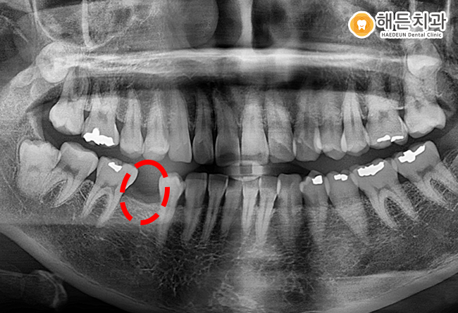 김*지님은 하악 오른쪽 부분 빨간색 표시한 부분, 작은 어금니 즉 소구치가