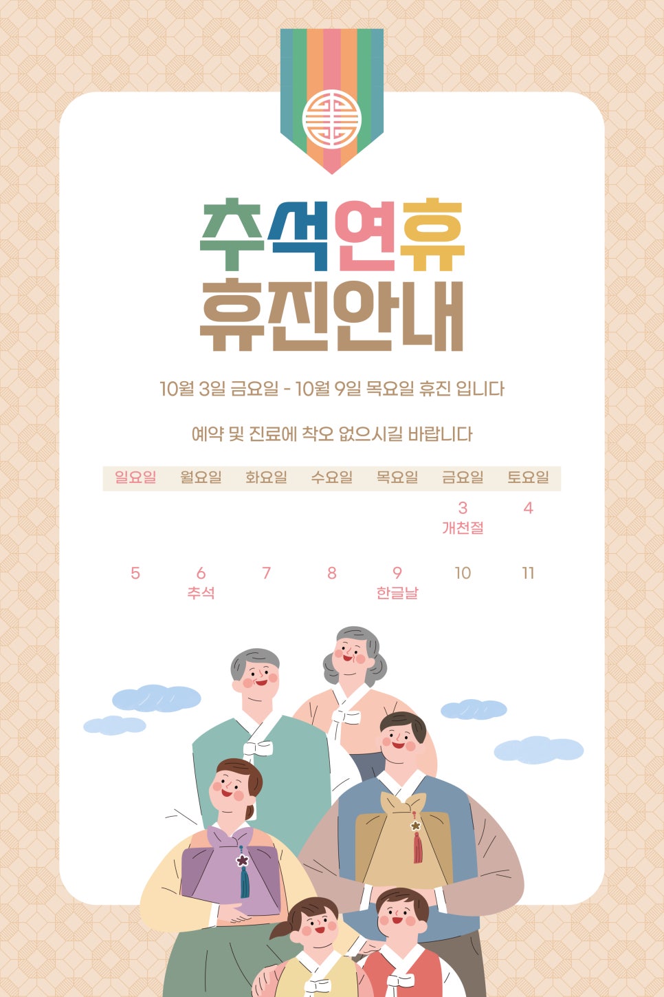 다가오는 10월 추석 연휴 진료일정에 대해 안내드립니다.